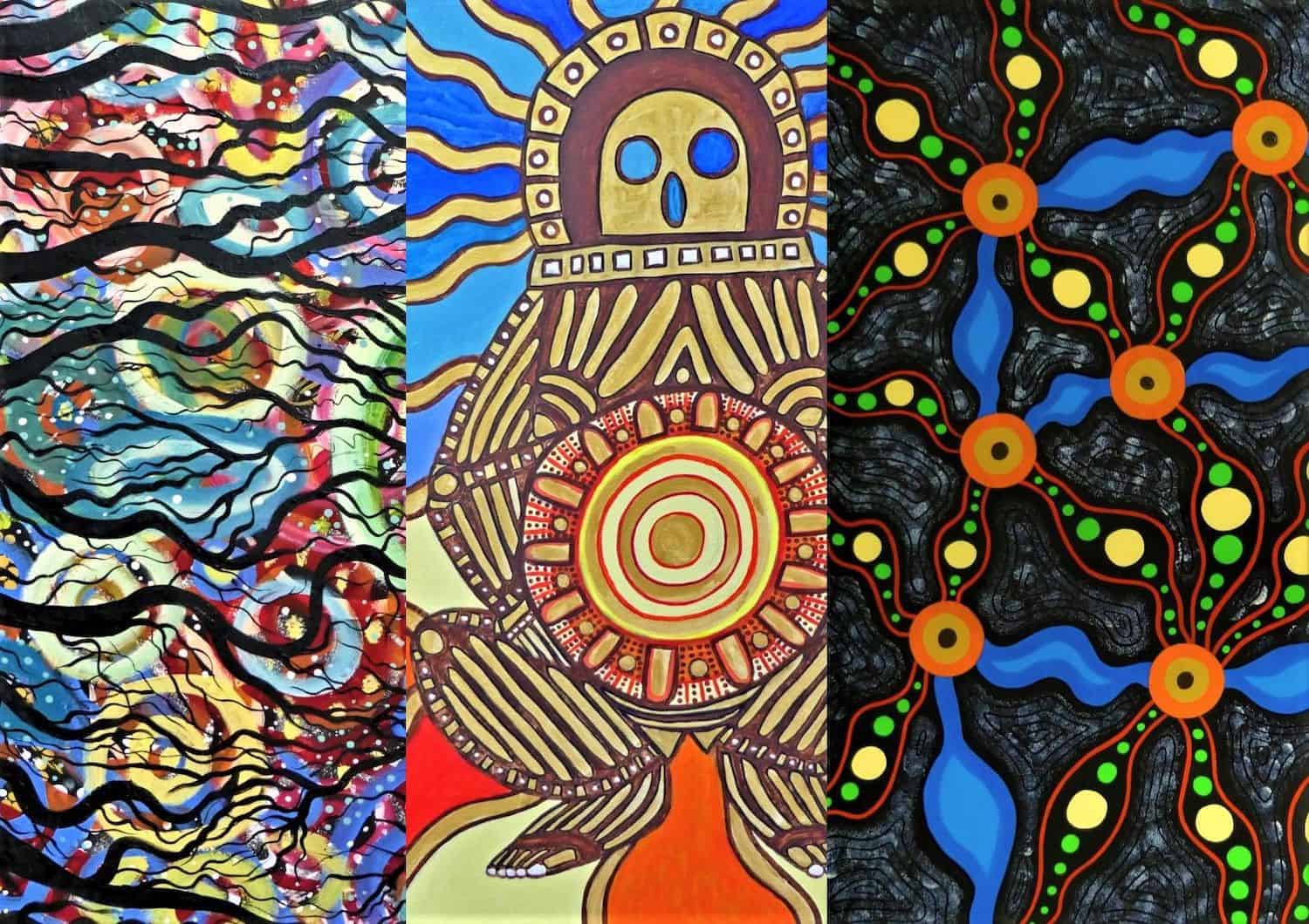 Kaiela Arts is proud to present significant new works by three local artists as they present visual representations of Country and Community from their personal view point. Different views and stories come together as epic works on canvas and a vibration of colour and form.